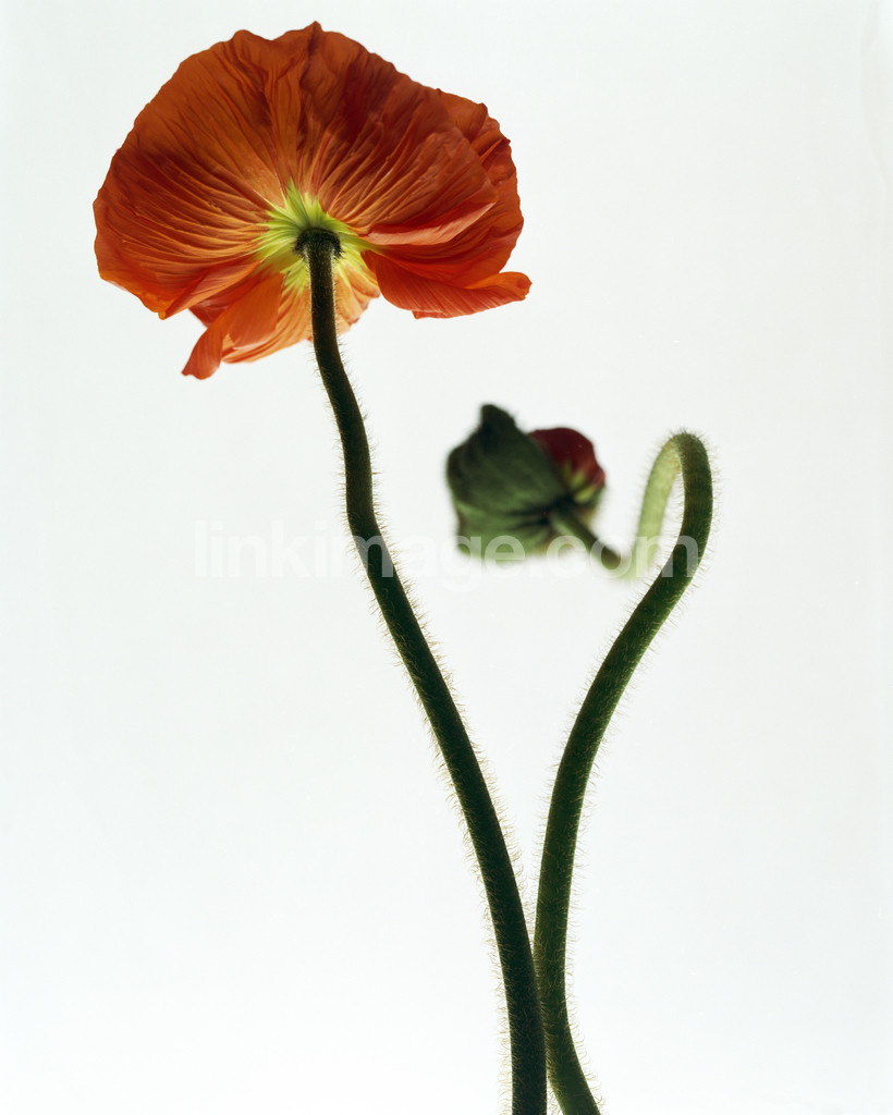 - poppy, flower, red, orange, green, hair, summer, two, isolated, stalk, stems