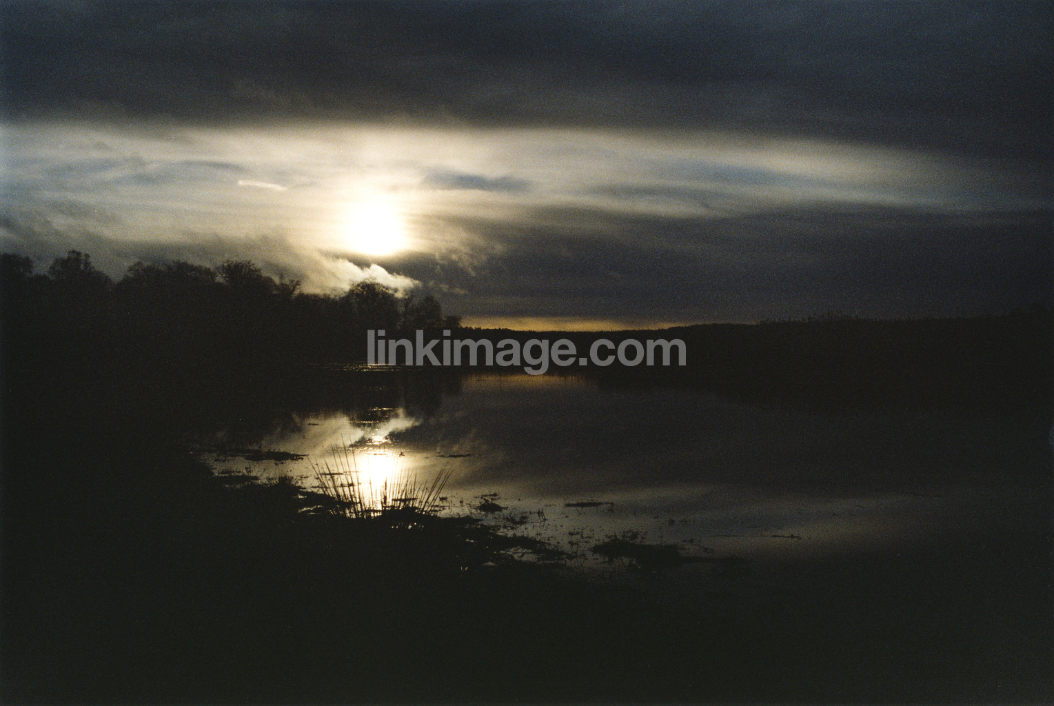 - drama, lake, reed, dusk, sunset, mystery, dark