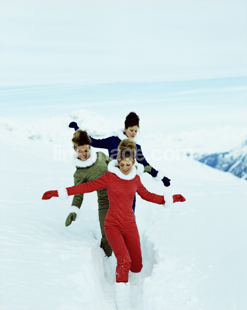 - winter, girls, colors, freedom, joy, women, three, snow, play, gender roles, female
