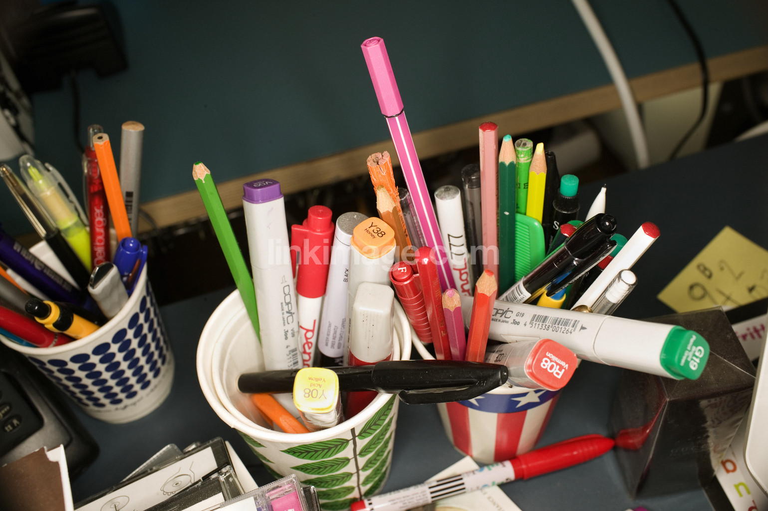 office, colors, choice, yellow, pens, pen, creative, mixed, work, move, disorder, colored pencils