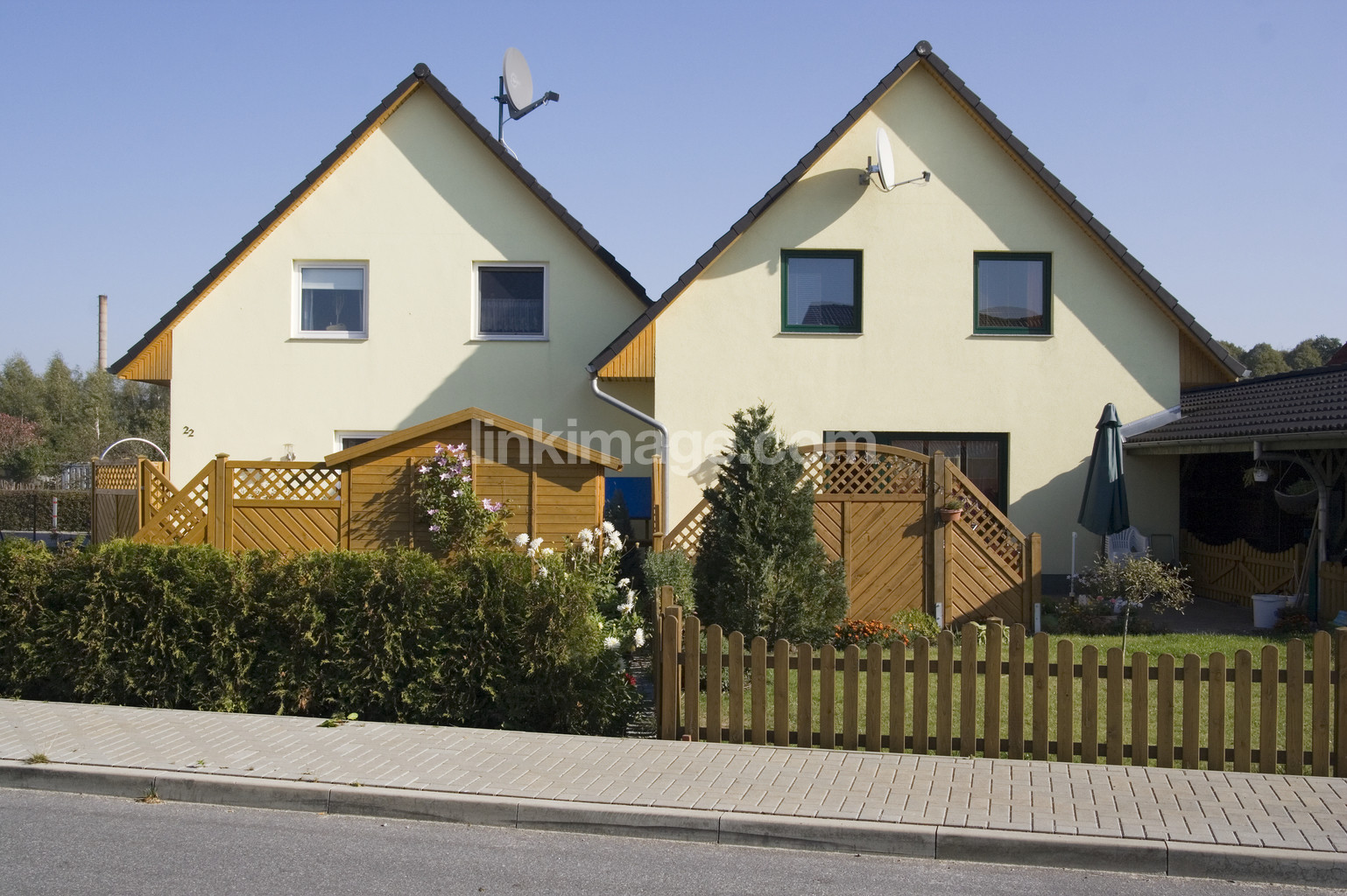 summer, grass, house, sky, design, architecture, plane, apartment, ger026, germany, housing, street, port, hedge, road