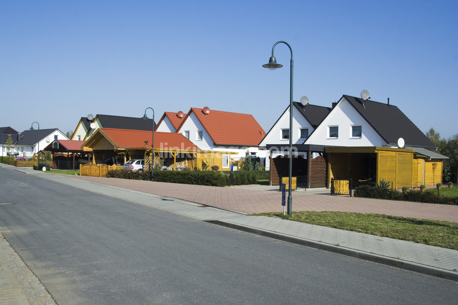- summer, grass, house, sky, design, architecture, plane, apartment, ger035, germany, housing, street, port, hedge, road, garden, car, flower, garage, pavement