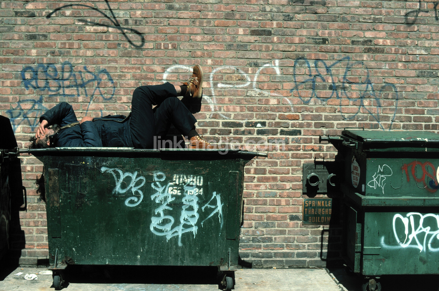 - male, ro, sleep, lie, lying, dustbin, debris, jar, wall, street, graffiti, ch207