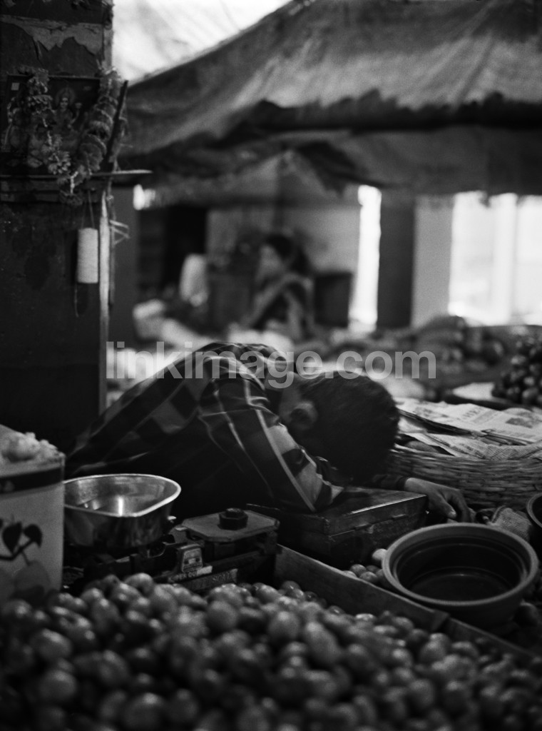 - male, sleep, market, tired, vegetables, rest, break, workplaces