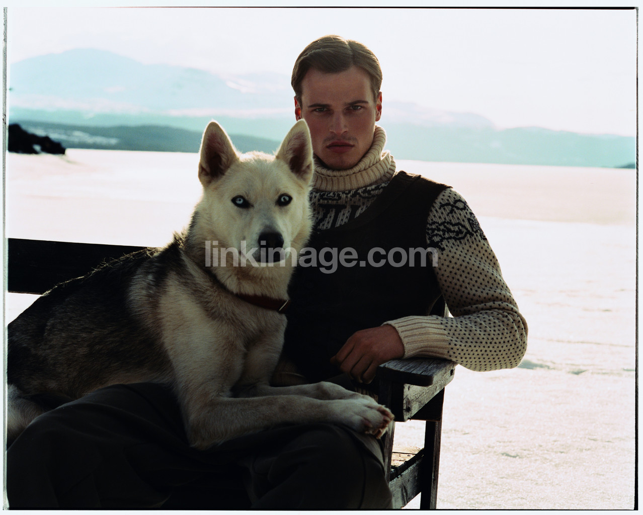 - male, guy, dog, friends, friend, portrait, fall, gaze, rock, sofa