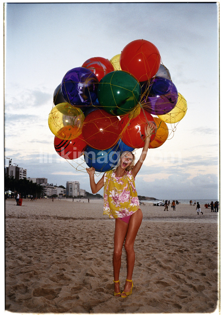 - female, girl, sand, shore, summer, fashion, balloon, ball, beach ball, glass, laugh, sky