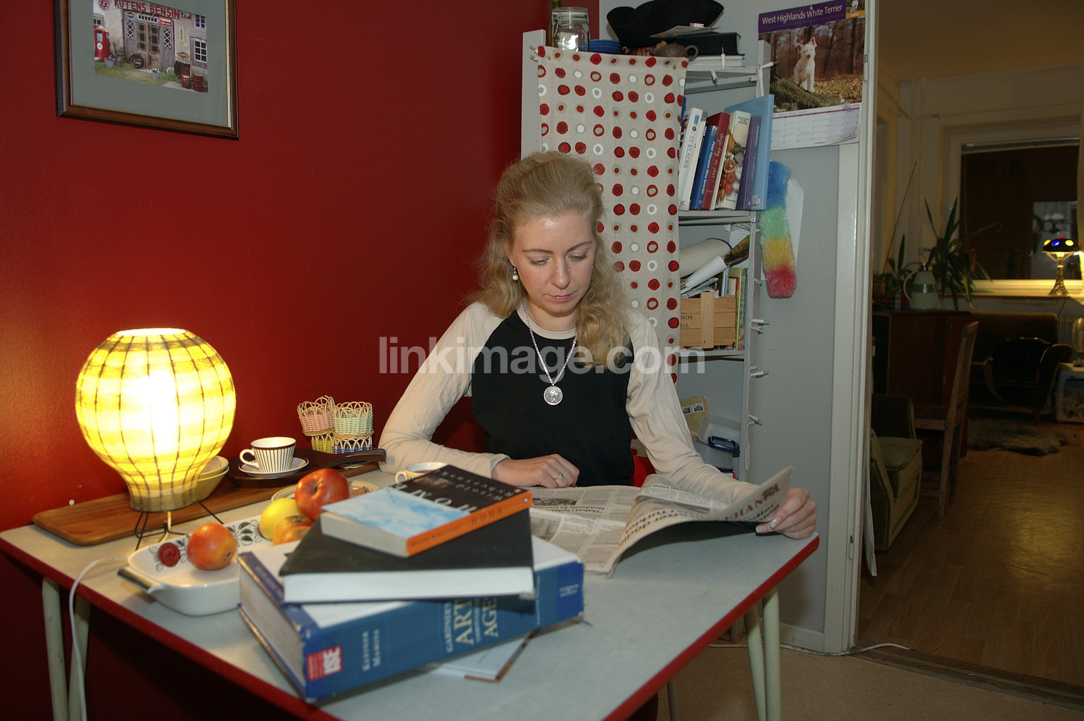 - lamp, light, female, student, journal, 50, interior, study, books, interior