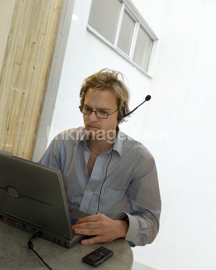 - male, student, working, study, portable, computer, mobile, telephone, headset, wireless, speed, school