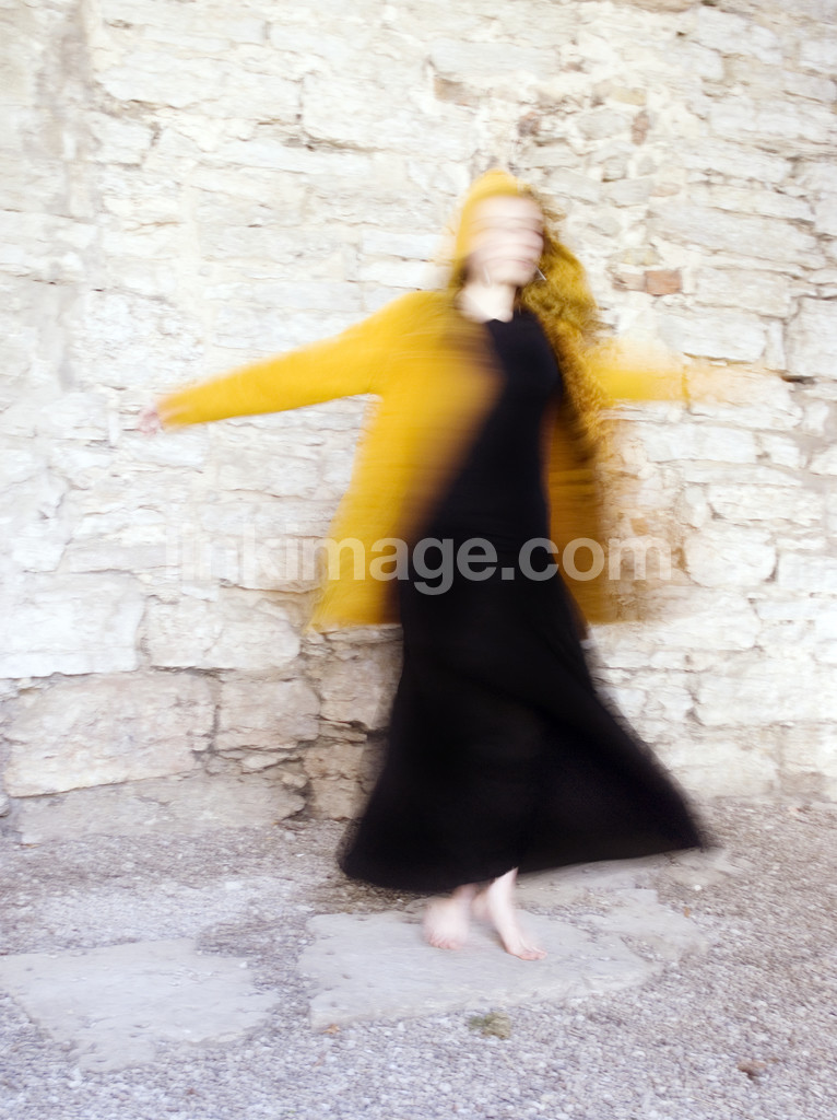 dance, girl, sweater, yellow, jacket, fuzzy, mind, dream, barefoot