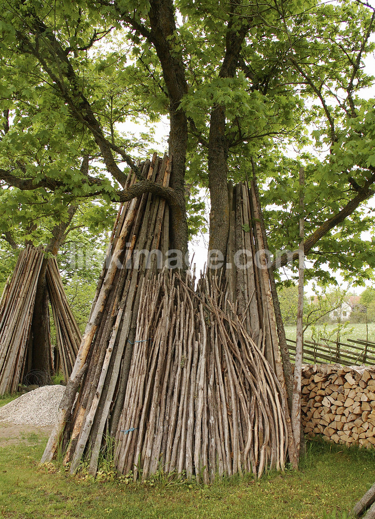 - Set vedstörar and woodpile in the meadow, gotland, sweden, 2005.