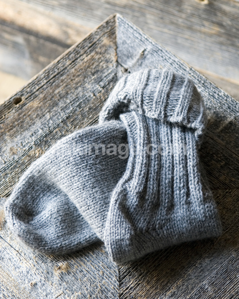 - Knitted woolen socks on old wooden table, sweden, 2006.