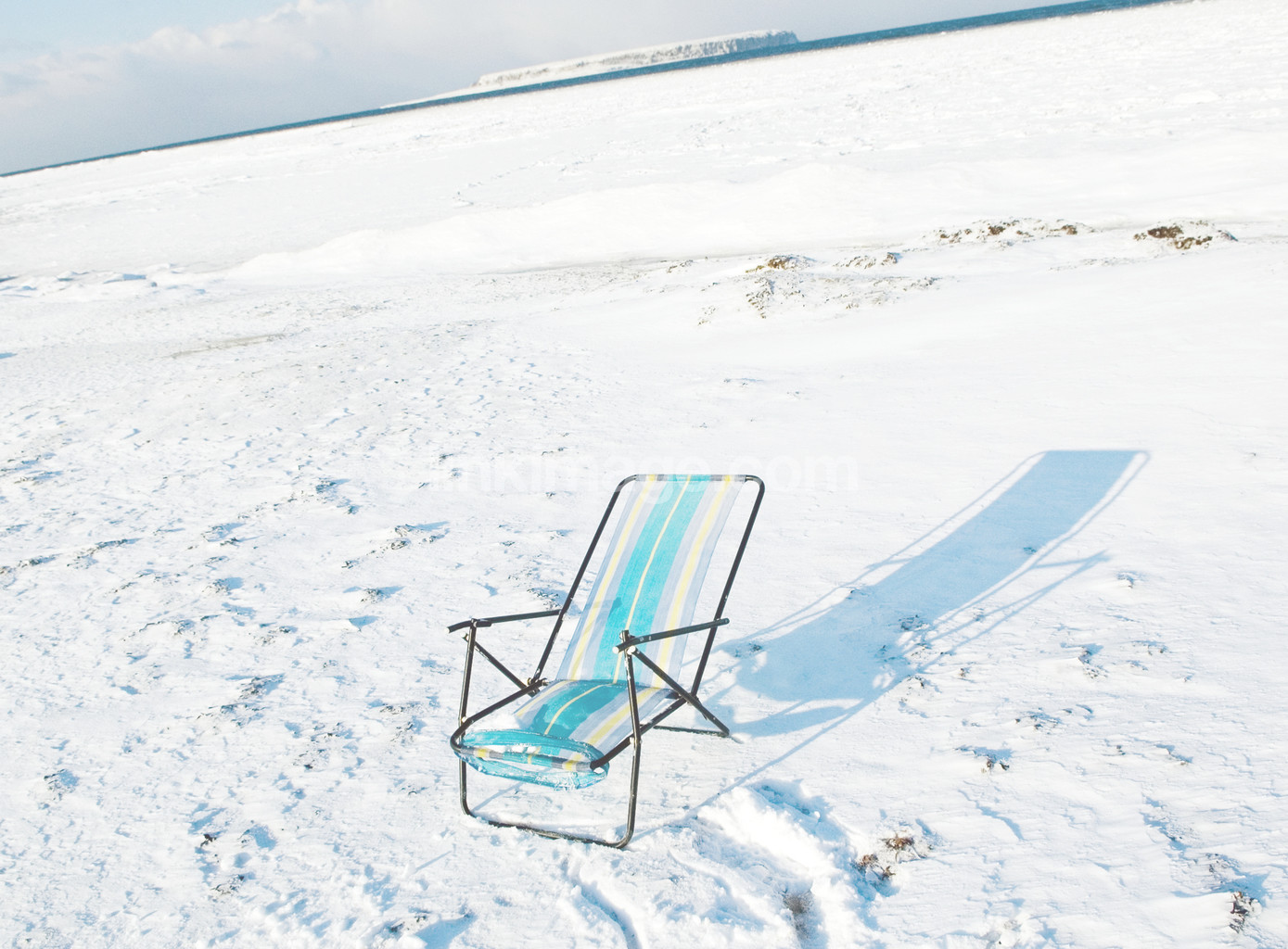 - sun, chair, winter, snow, shore, sea, island, alone, fate, spring, deckchair