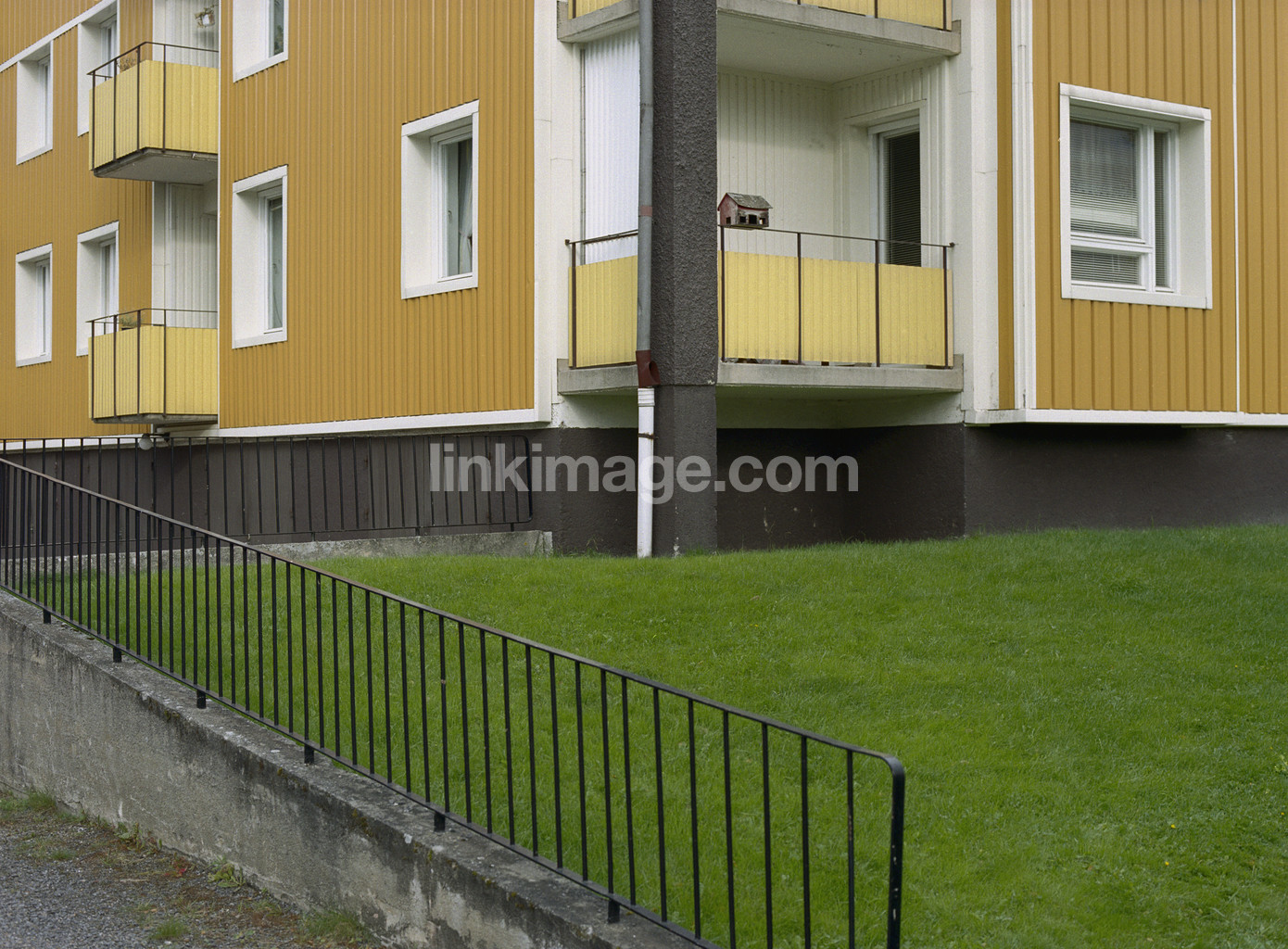 Birdhouse on the balcony. Residential building. Timra
