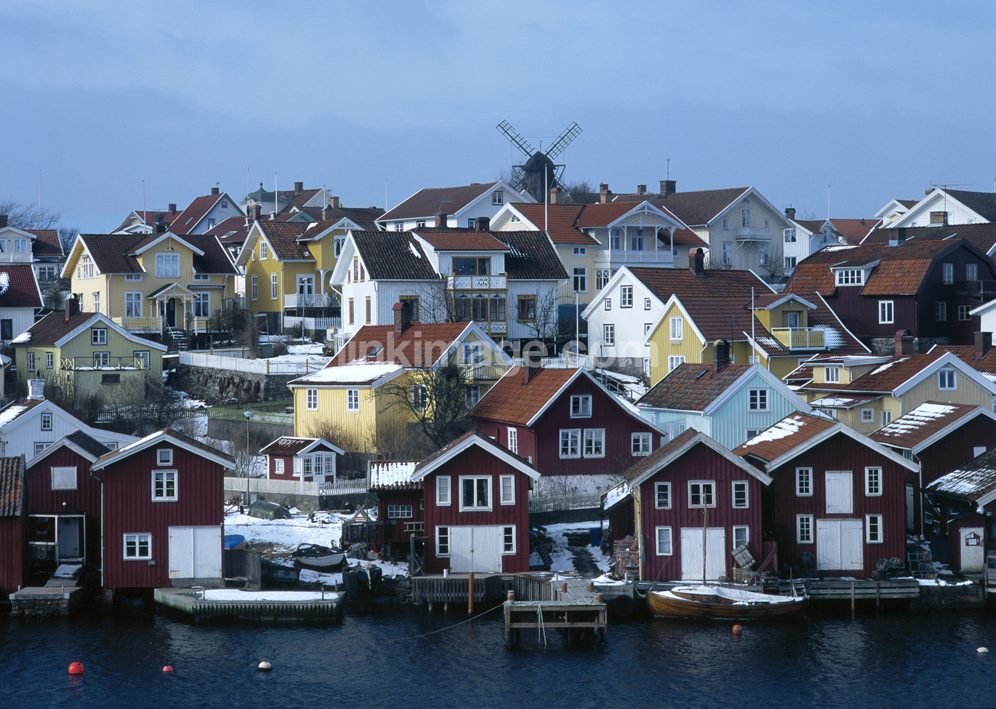 - wooden house, buildings, port, sea, winter, weather mill, mölla