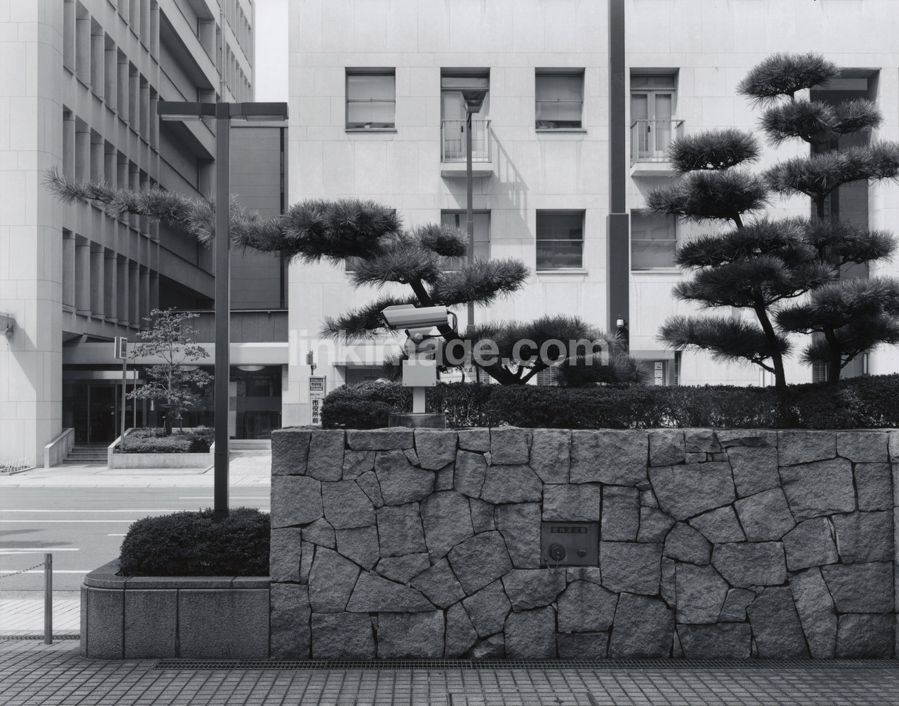 - tree, stone, surveillance camera, wall, city, office