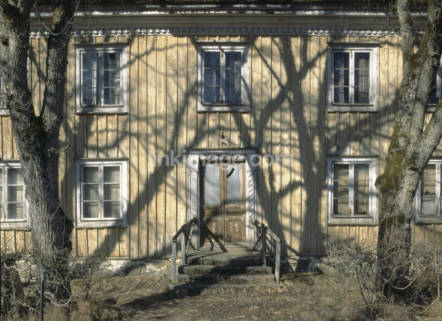 - façade, door, wood, entrance, villa, wooden house, shadows, spring, tree
