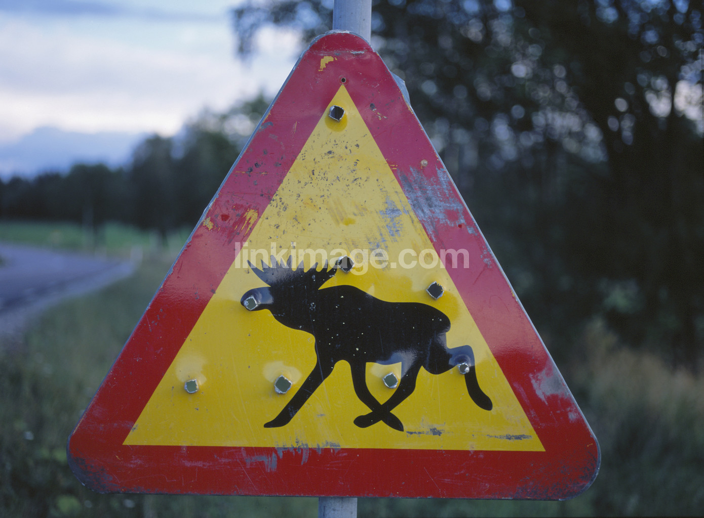 - hunting, transport, communication, elk, traffic sign, bullet holes, warning, sign, triangle