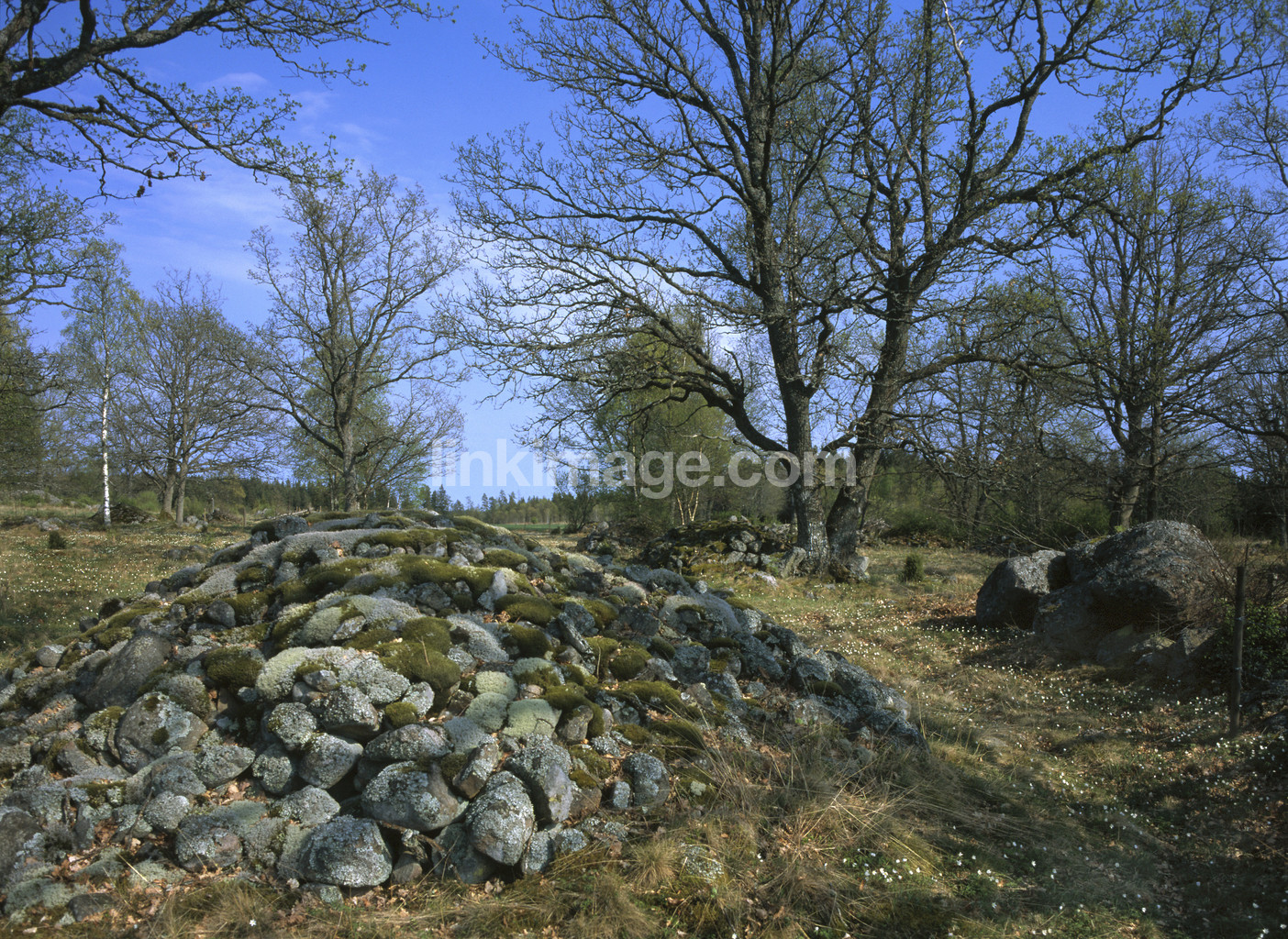 - nature, småland, spring, stones, heap of stones, tree, forest