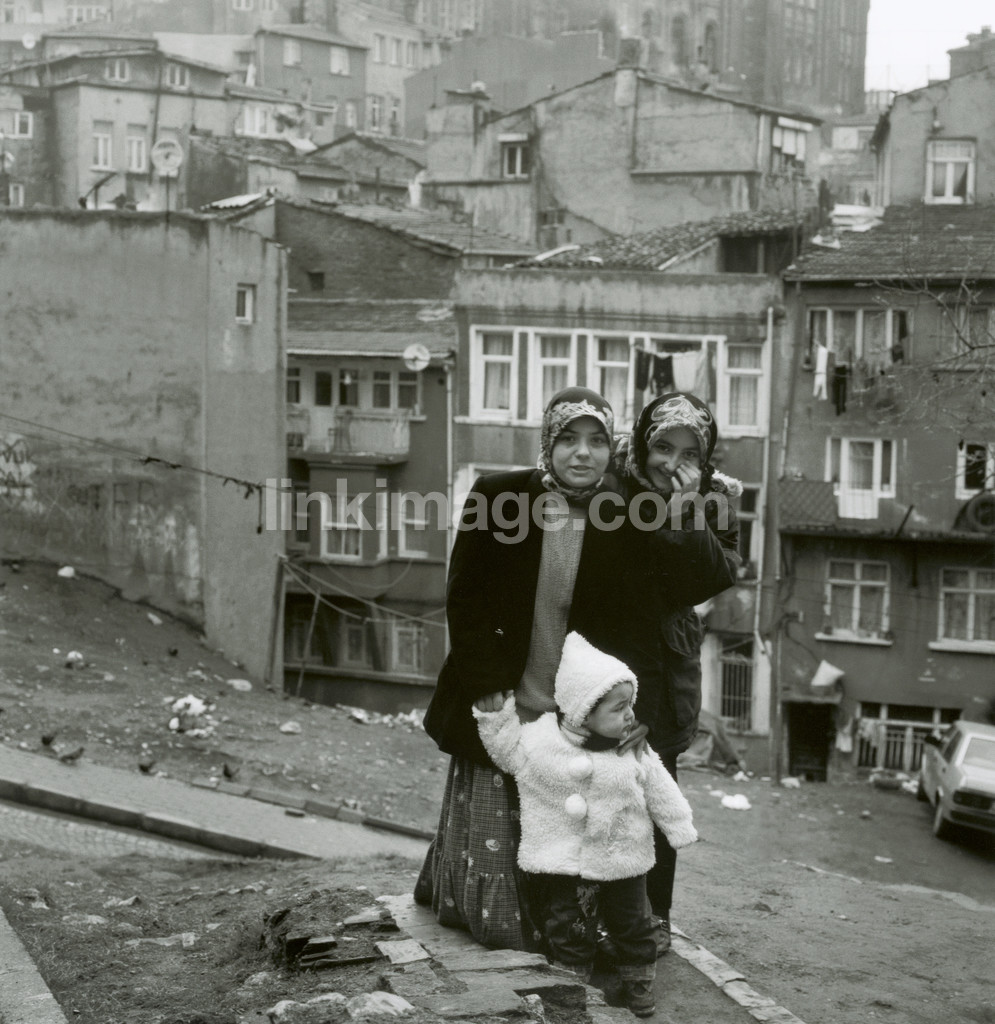 - girls, siblings, buildings, babysitter, children, slum, decay, poor
