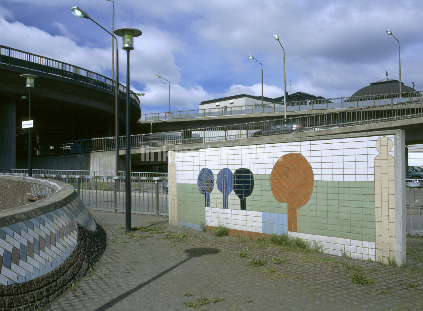 Park. Trees in mosaic tiles.