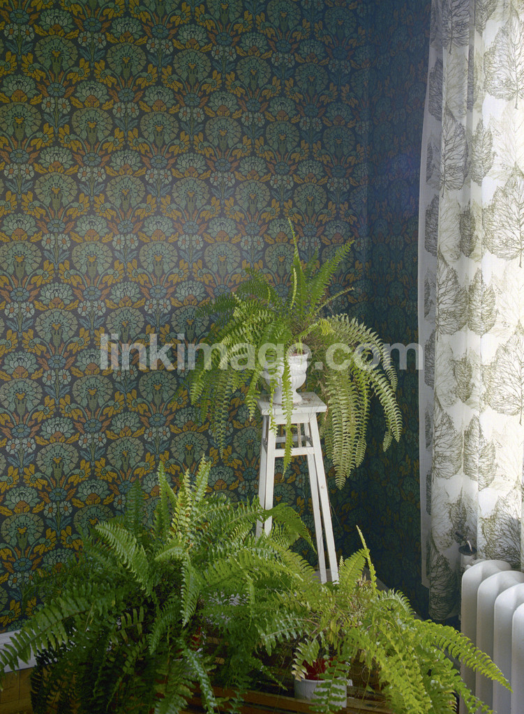 - interior, flowers, pattern, pedestal, houseplant, elements, window, curtain, wallpaper
