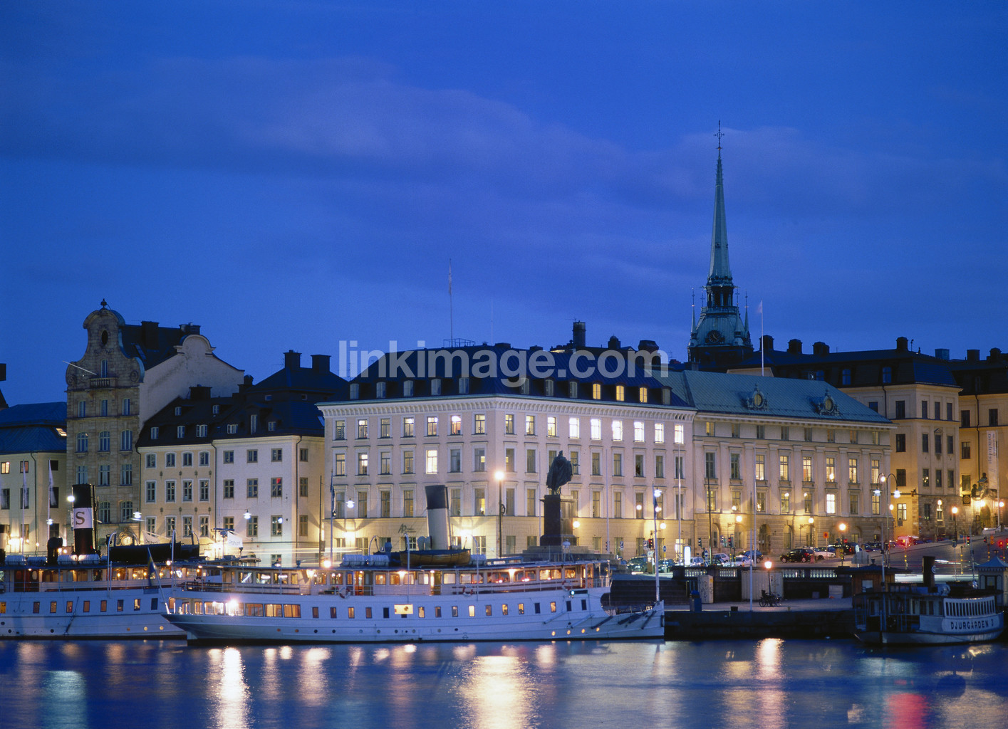 - Archipelago boat in front of the old town. night photo