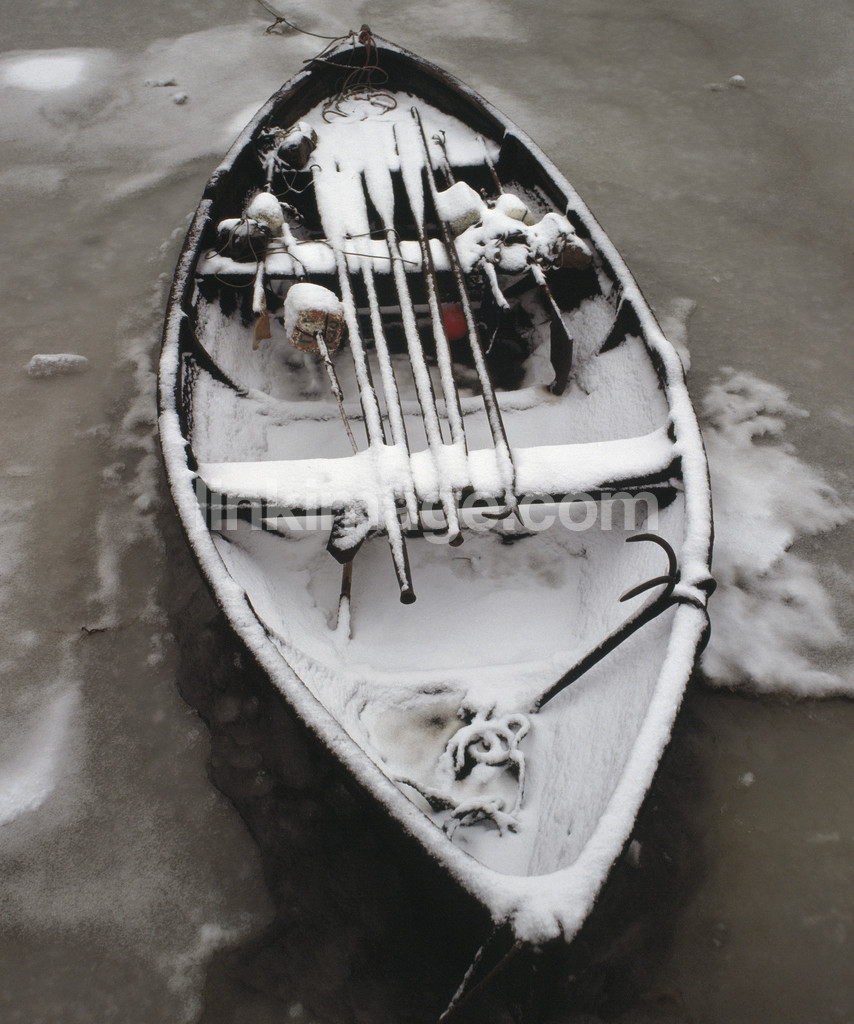 - snow, winter, ice, echo, rowboat, port, boat, frost, paddle, frozen, beached, country, shore, coast, fishing boat, fishing, anchor