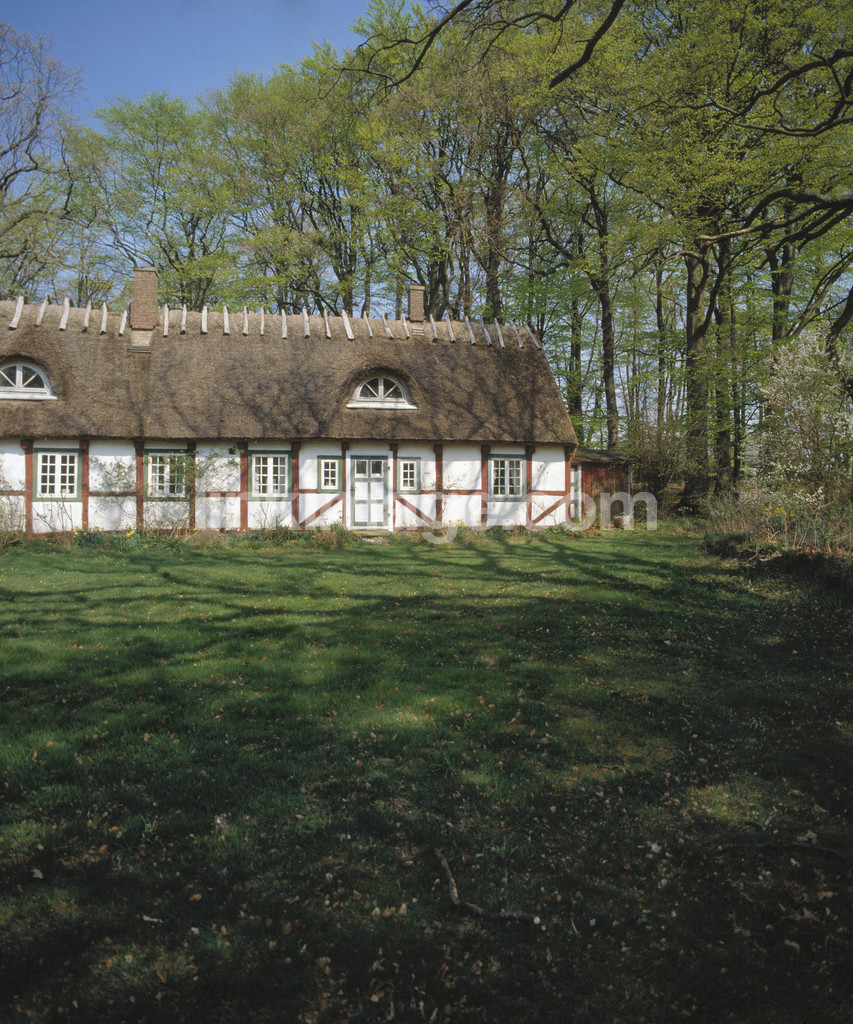 - forest, spring, thatched, beech forest, renovate, house, home, scanian, swedish, tree, skånelänga