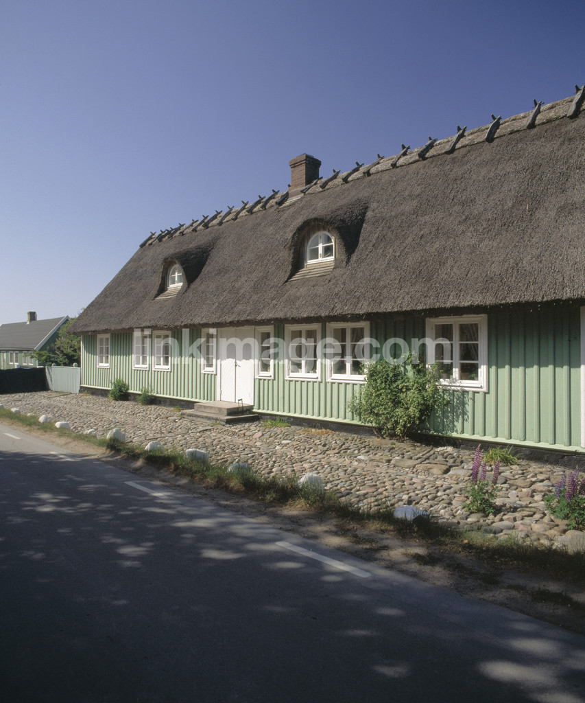 - wooden house, street, thatched roof, green, greens, road, villa, house, extend, skånelänga