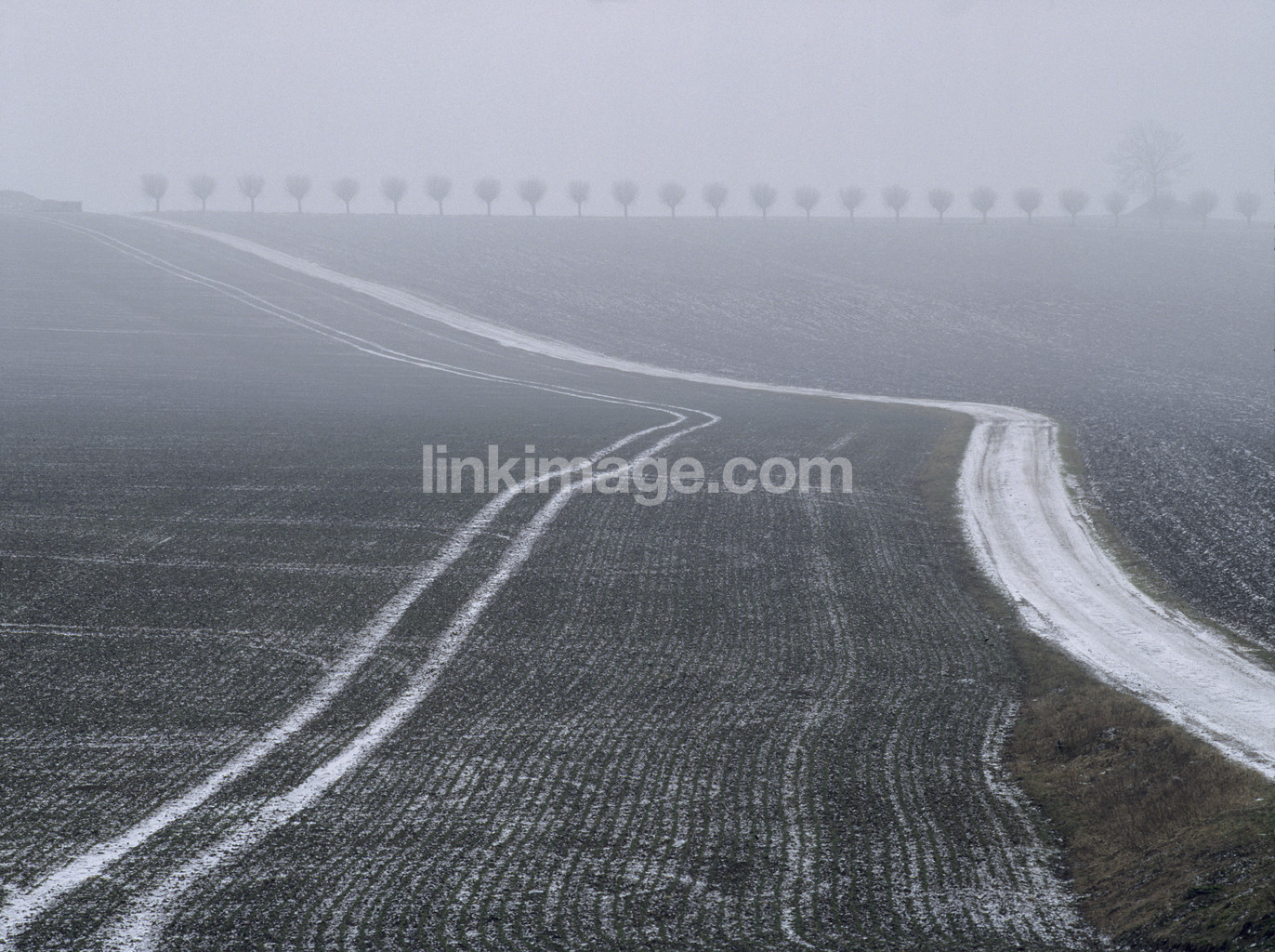 - haze, fog, snow, frost, agricultural, gravel road, rut, avenue