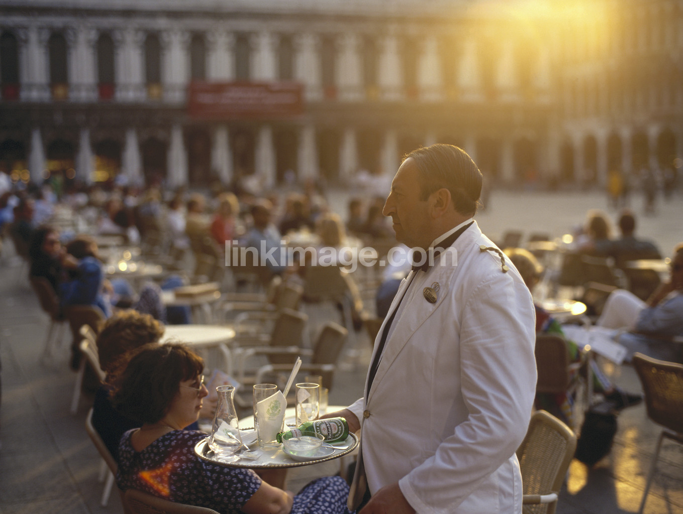 Outdoor seating. Waiter At Mark's Square.
