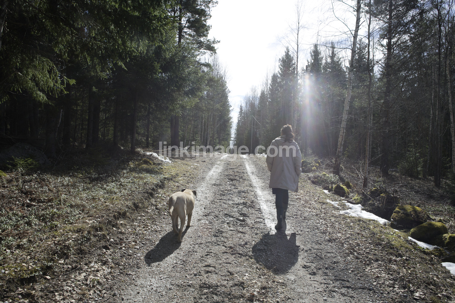 - walk, dog, road, gravel road, forest, movement, spring, sl1761