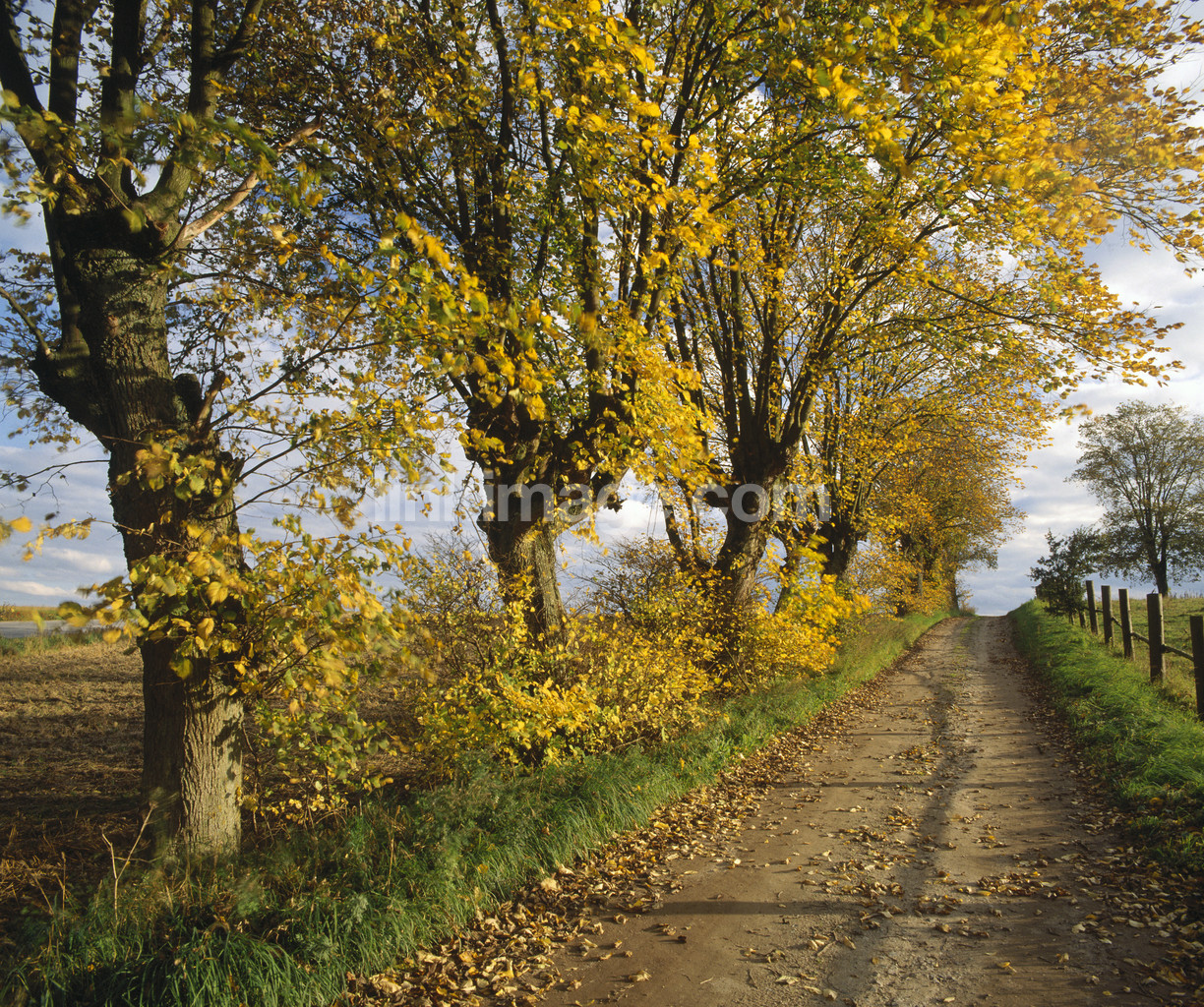 - Trees with leaves. dirt road. skåne