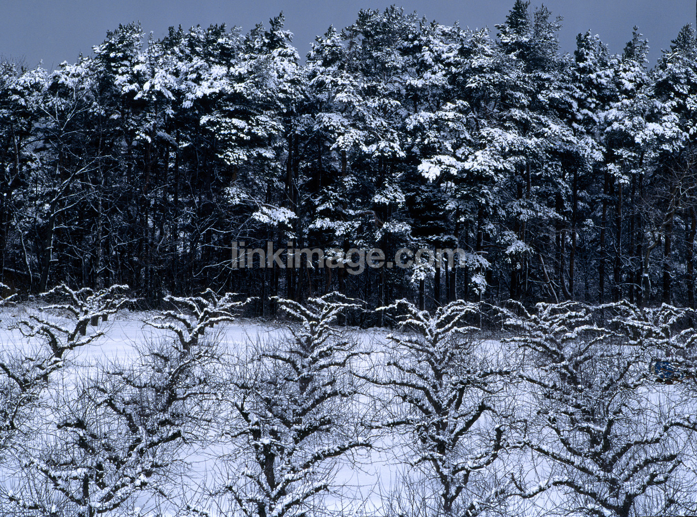 - Fruit trees in winter landscape.