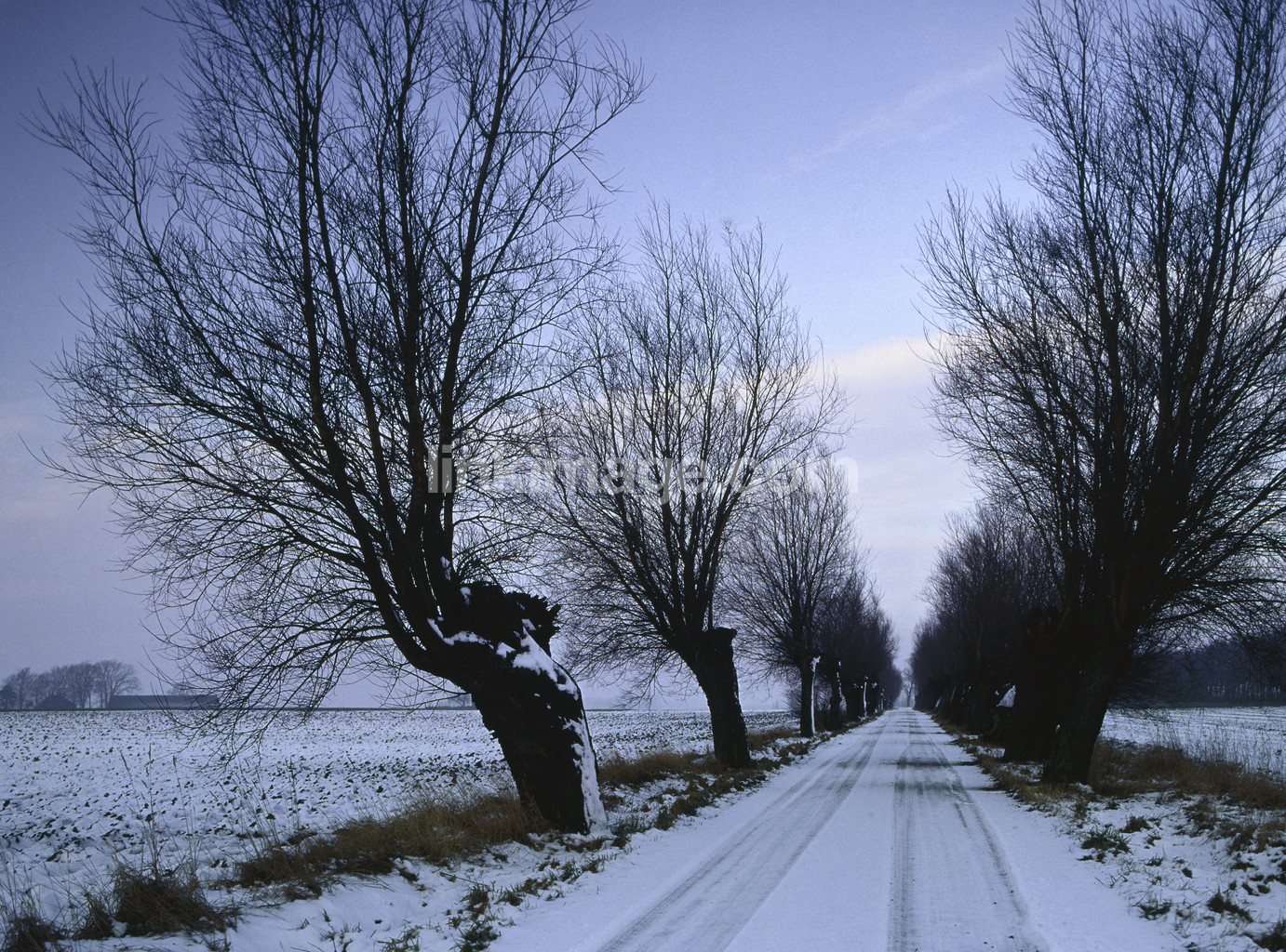 Arrows In Winter Landscape. Road. Snow. Skåne