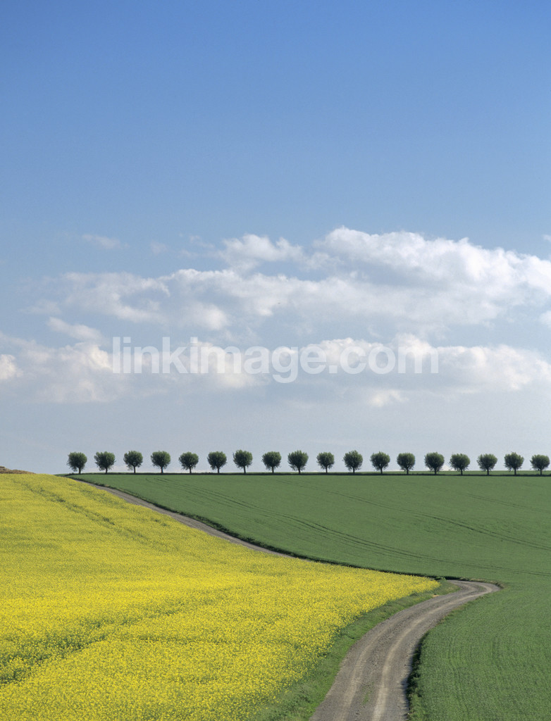 - agricultural, agriculture, meadow, summer, road, sky, tree, rapsfält, rapeseed, go, gravel road