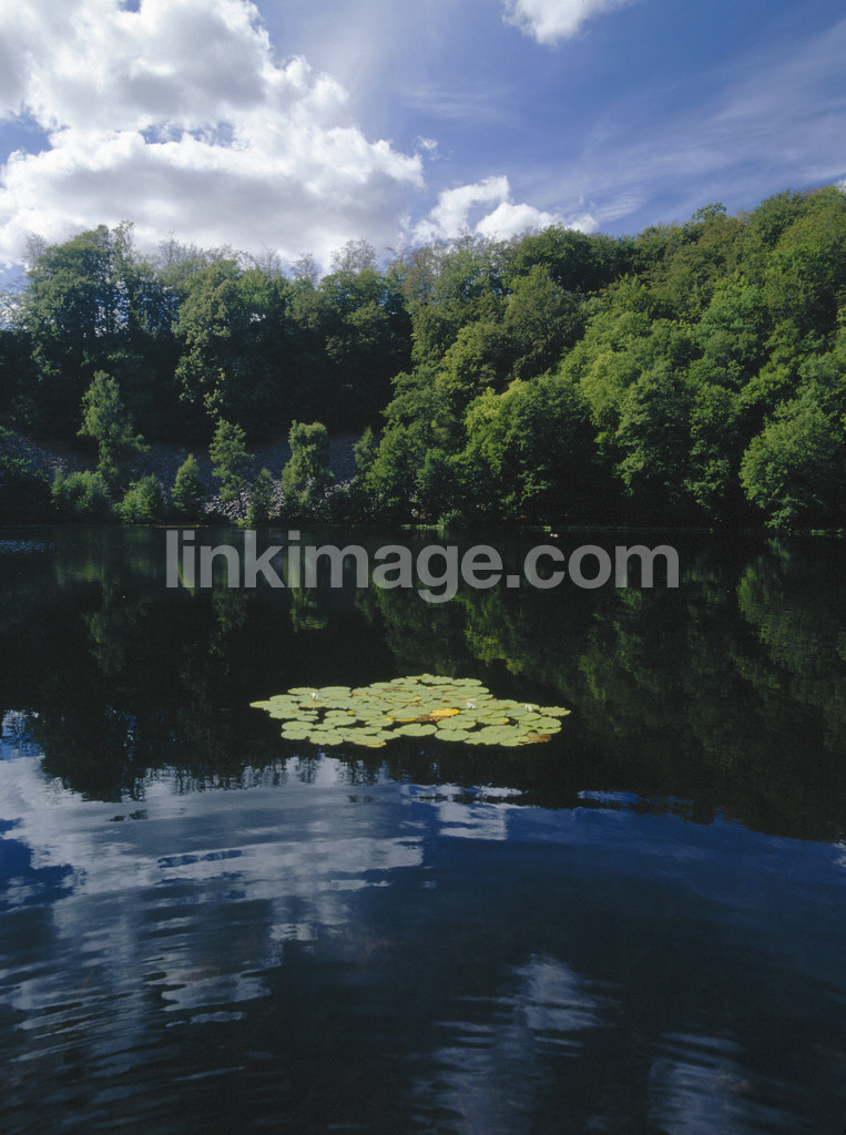- water, sky, cloud, forest, lake, waterlilies, mirror polished