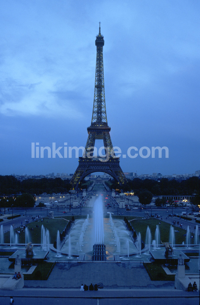 - architecture, park, square, dusk, fountain, view, eiffel tower, design, construction