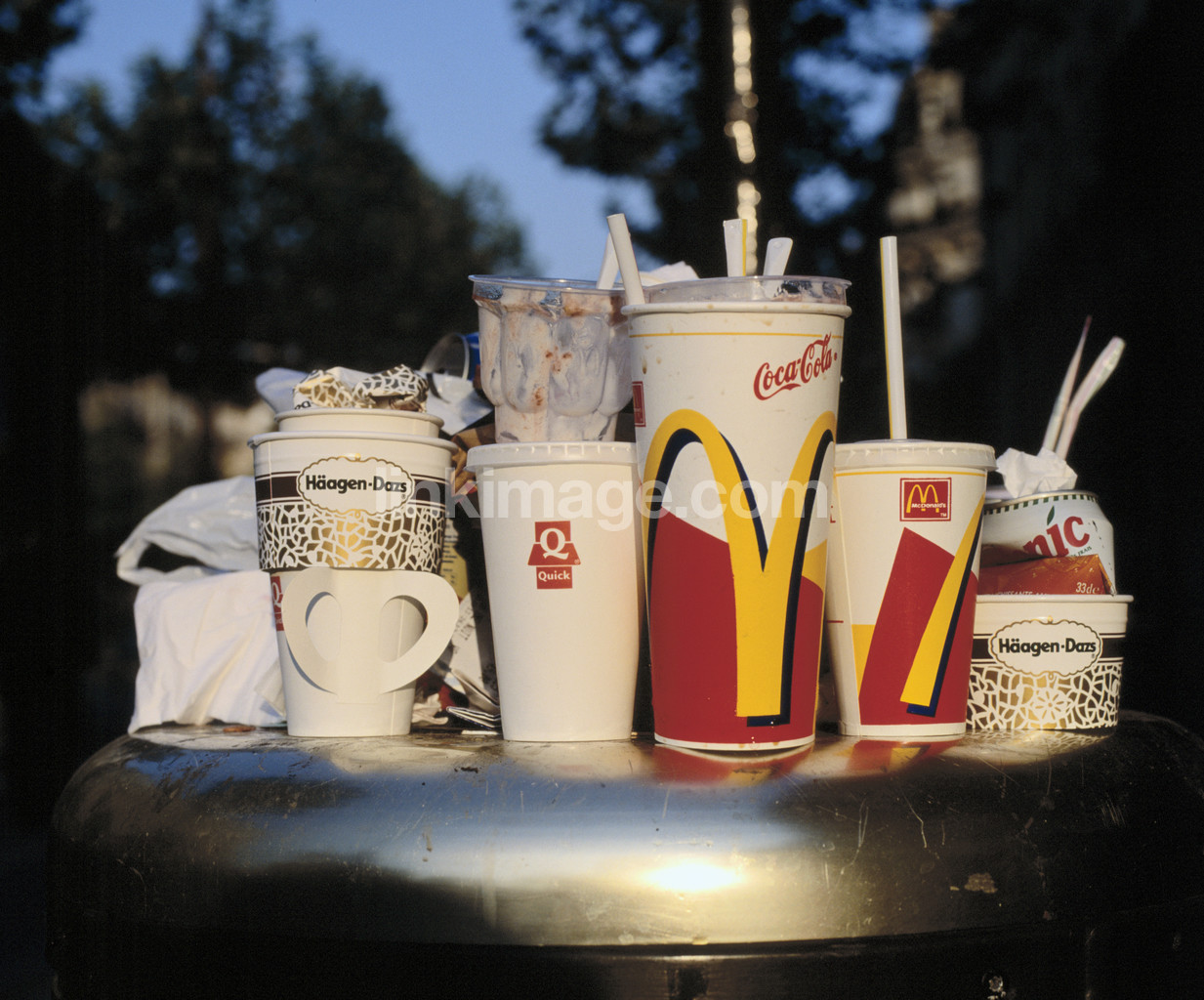 - Trash with fast food remains
