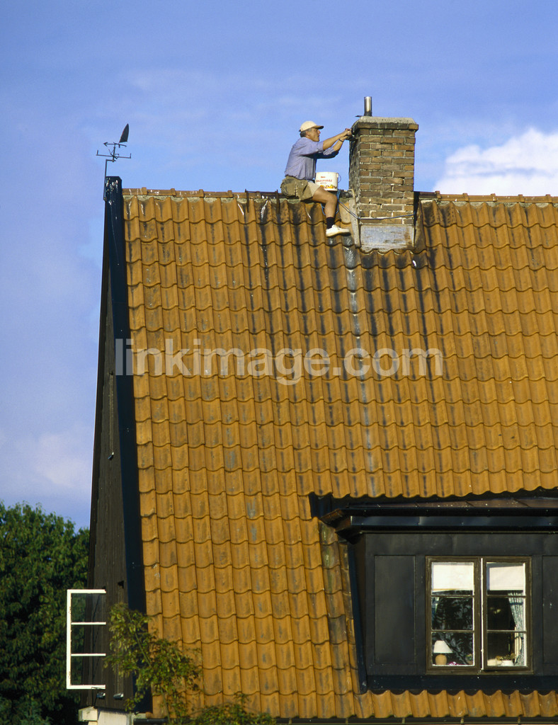 - homes, garden, ceiling, skortsten, brick tiles, summer, male, repair, law, bricklayer