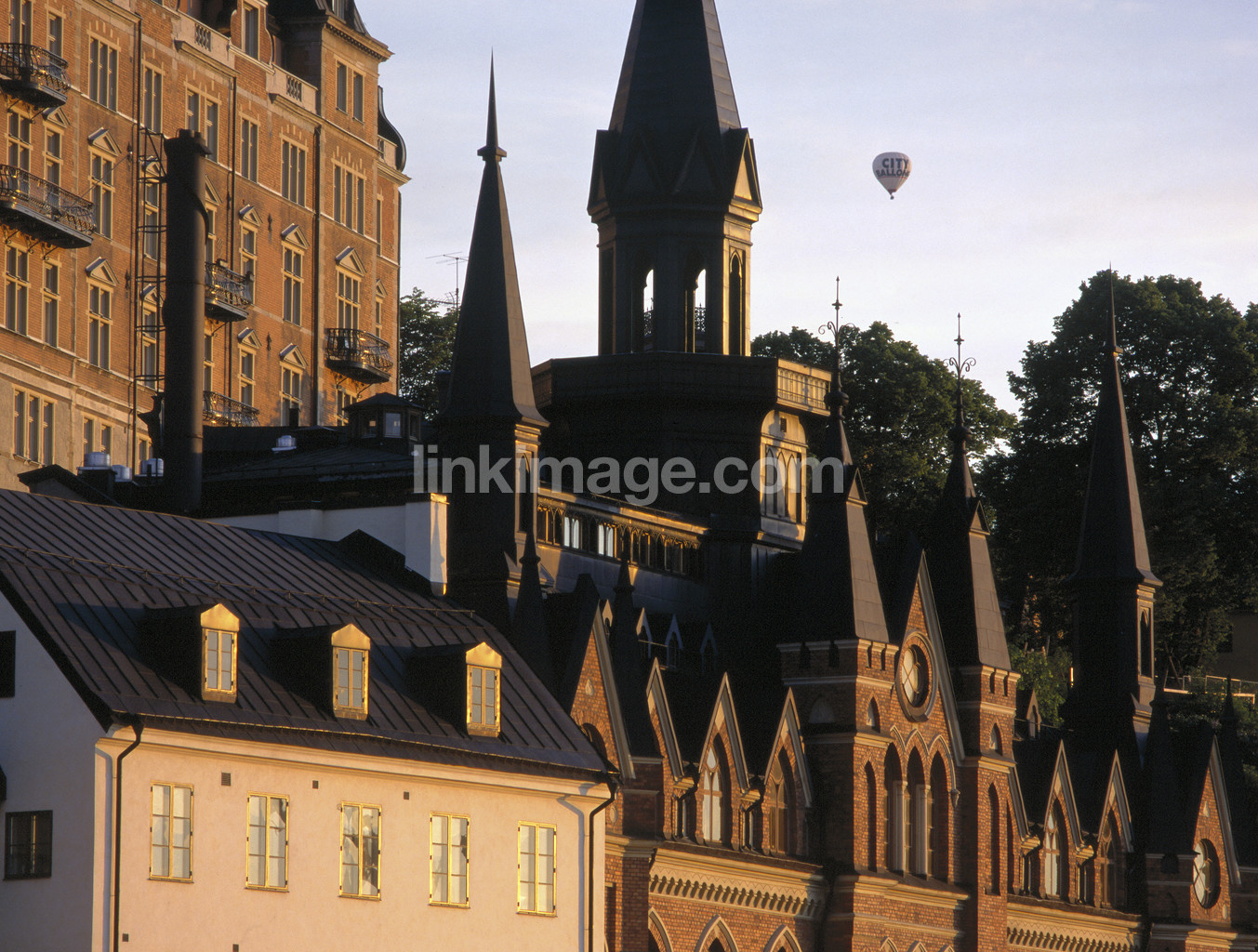 - housing, home, hot air balloon, sky, façade, södermalm, sunset, summer