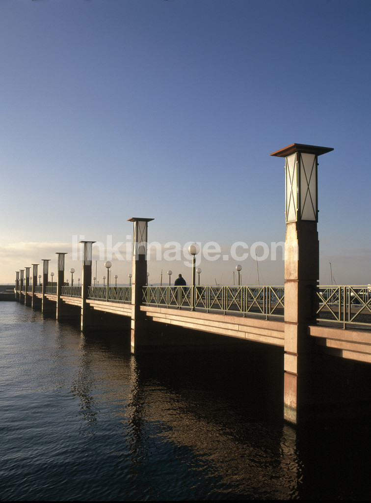 - bridge, communication, water, pier, dusk, lighting, lamps