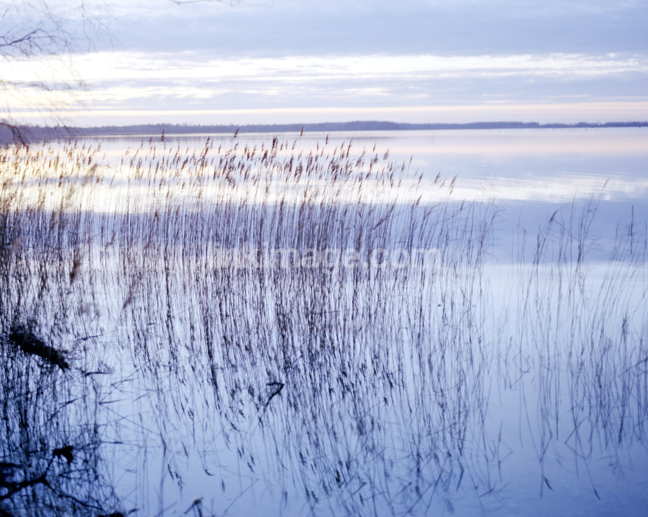 - reed, lake, blue, reflection, water, horizon, straws, sky