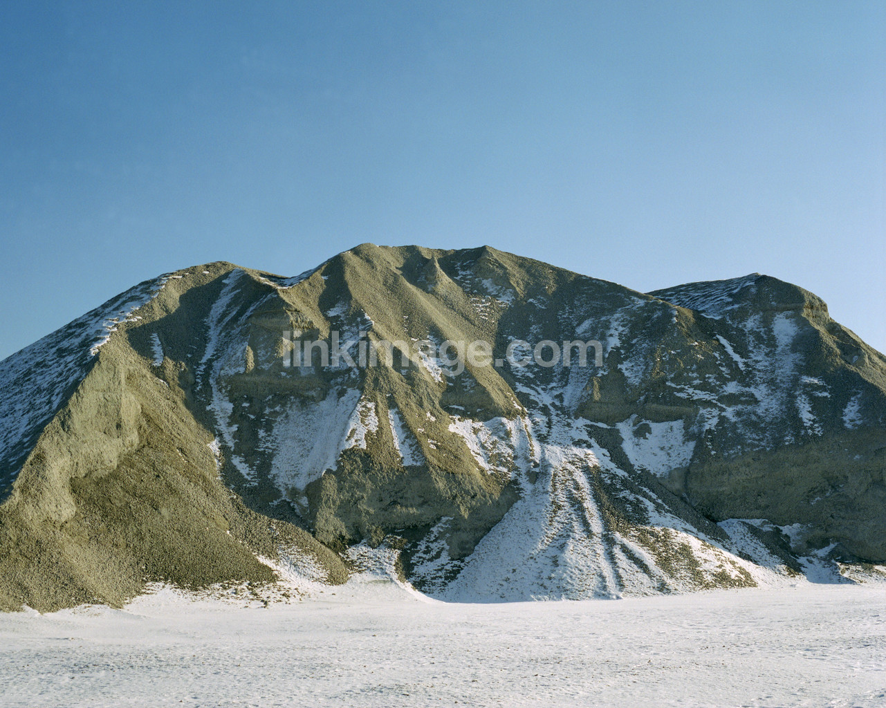 - sand, gravel, heap, sandpile, snow, sky, blue, gravel pit, winter