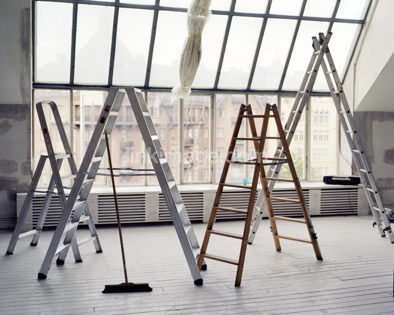 - studio, window, improvement, ladders, ladder, broom, room, cleaning