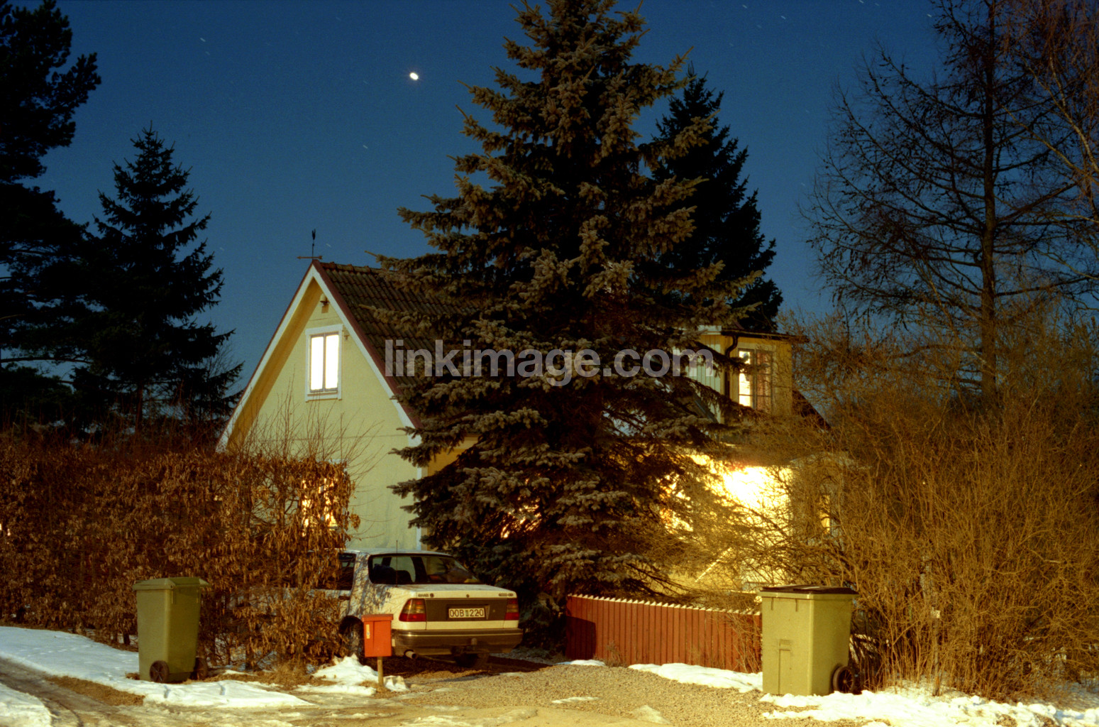 - car, villa, house, snow, night, dark, light, mystery, home, star, sky, tree, homes, winter