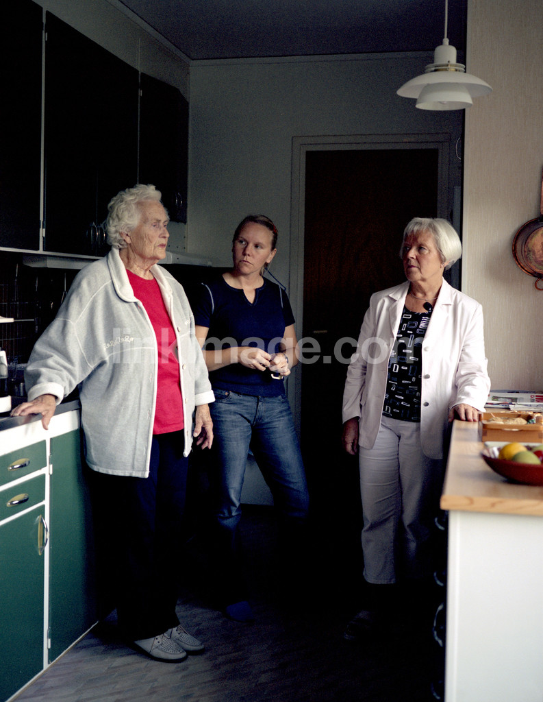 man, adults, older, colors, female, family, home, call, three, mother, grandma, kitchen