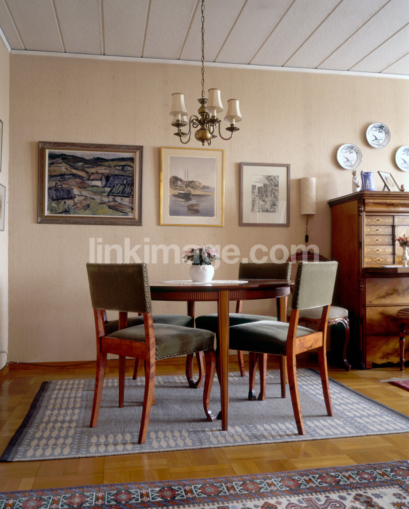 plaques, mat, room, home, lamp, chairs, table, living room furniture, older, lodging, interior
