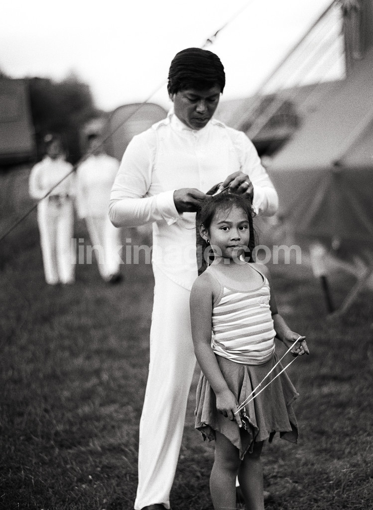 - circus, artist, girl, dad, braids, area, tent, male, family, portrait