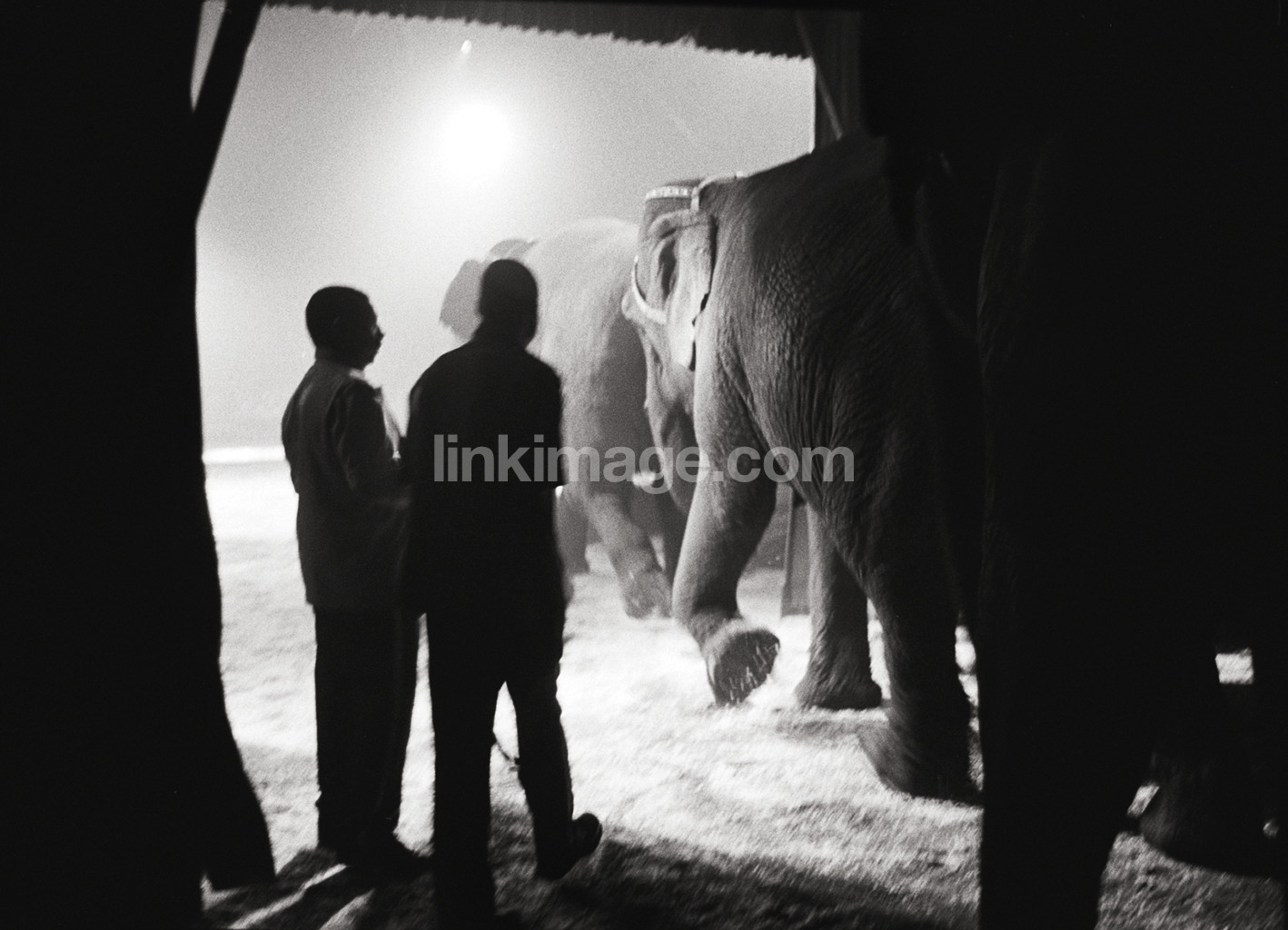 - circus, elephant, stables, performance, attendant, tent, silhouette, two